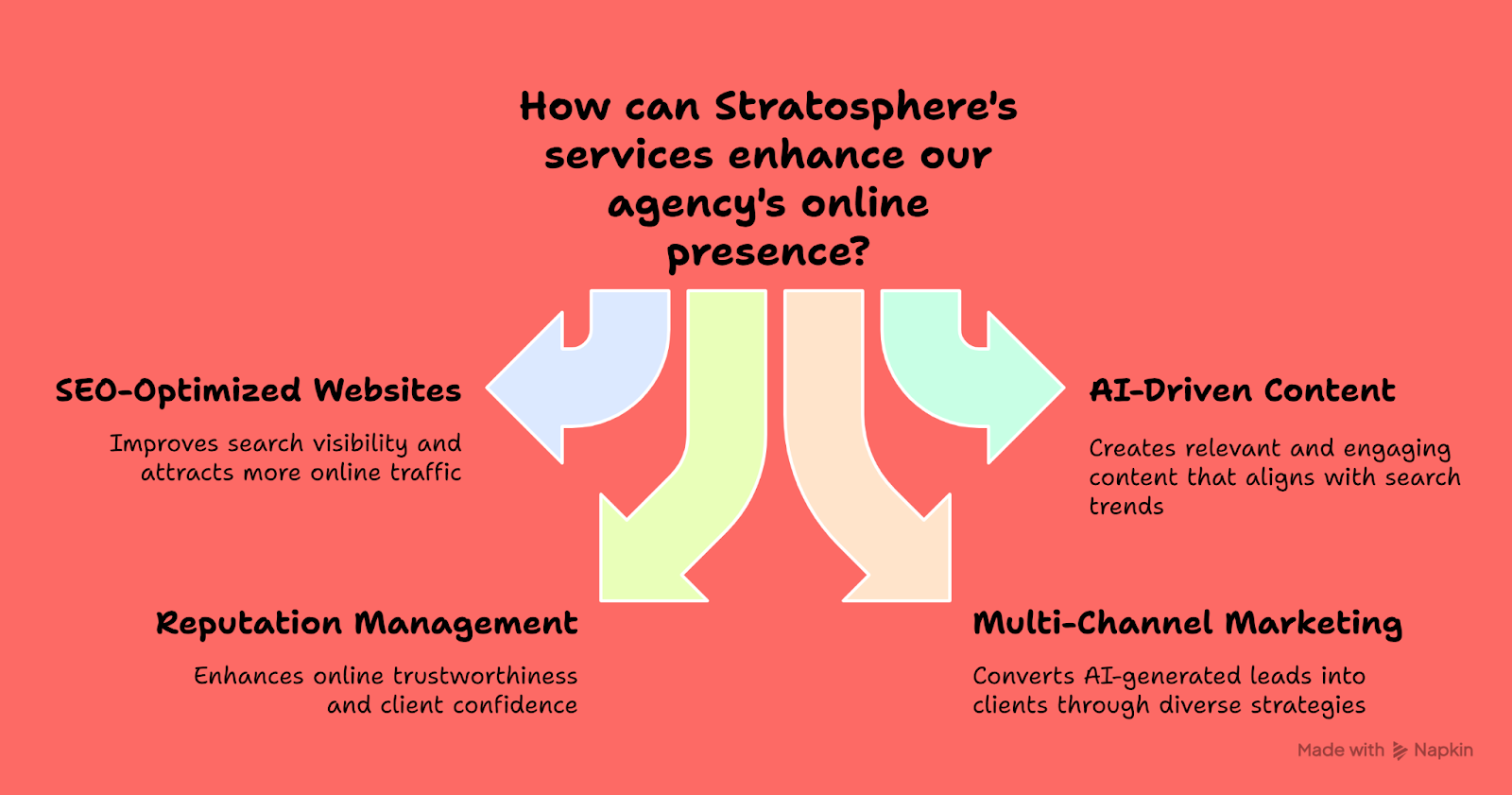 Stratosphere specializes in AI content marketing and SEO services exclusively for insurance professionals, offering solutions that include:
